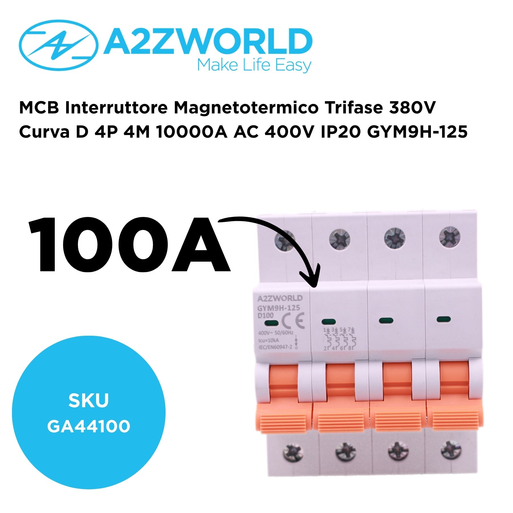 MCB Interruttore Magnetotermico Trifase 380V Curva D 4P 4M 10000A AC 400V IP20 GYM9H-125, Disponibili 80A 100A 125A (C100A)