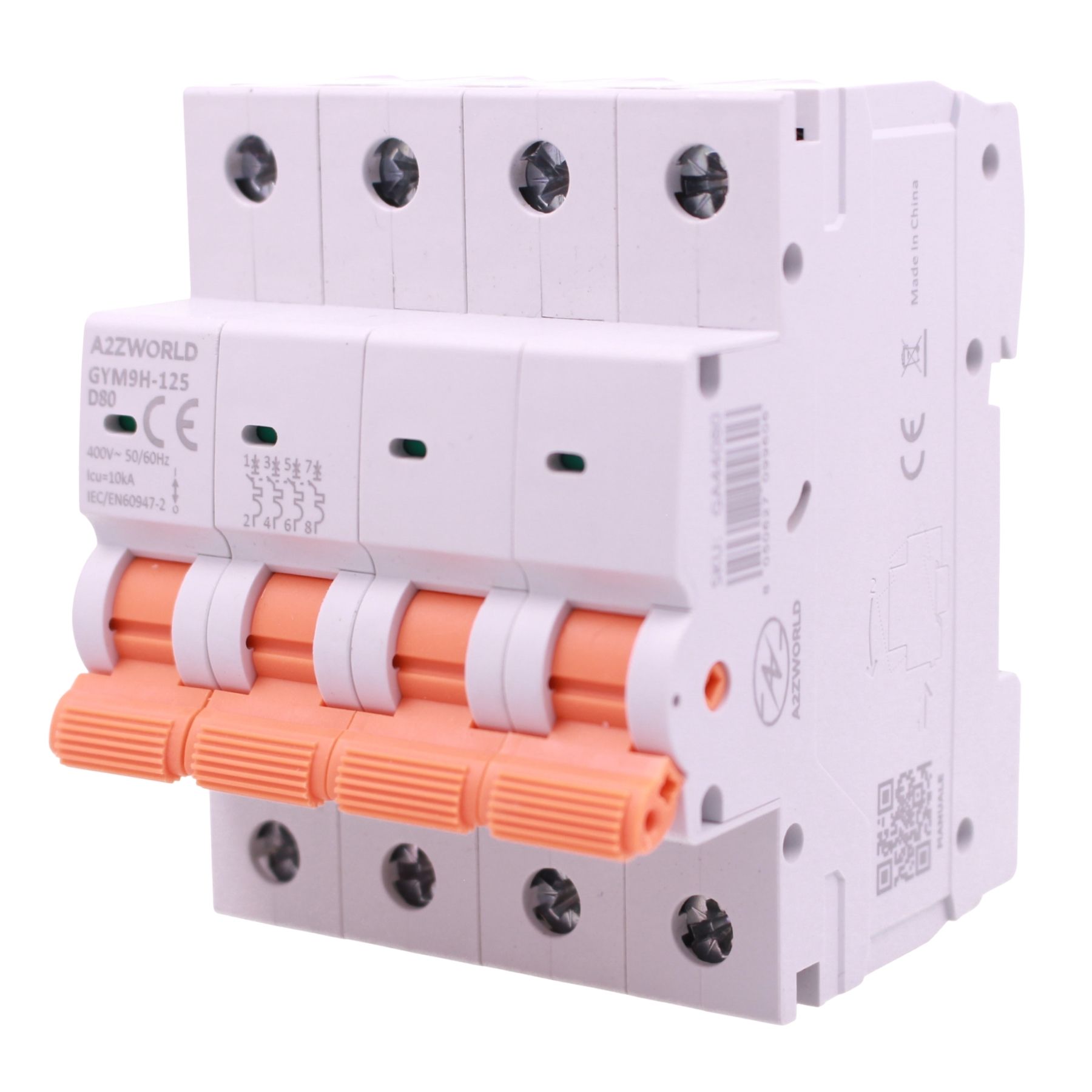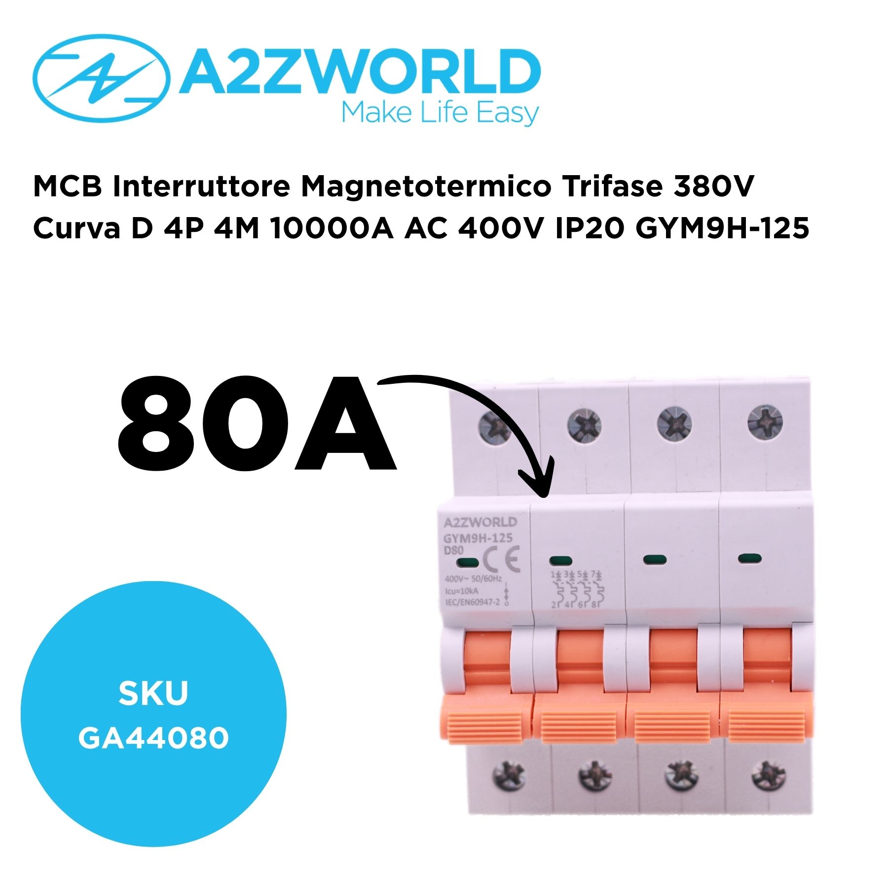 MCB Interruttore Magnetotermico Trifase 380V Curva D 4P 4M 10000A AC 400V IP20 GYM9H-125, Disponibili 80A 100A 125A (C80A)