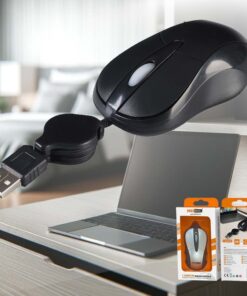 - Realizzato in ABS leggero ma robusto, ergonomico ed utilizzabile sia da utenti destrosi che mancini, dispone di un cavo retrattile e di 2 pulsanti con al centro una rotella di scorrimento.