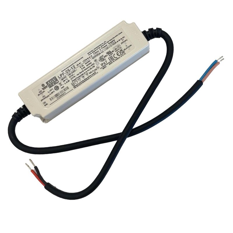 MW MEAN WELL LPF-25-12 Alimentatore Led Driver CC CV 12V 2,1A 25W IP67 Input 220V e 110V