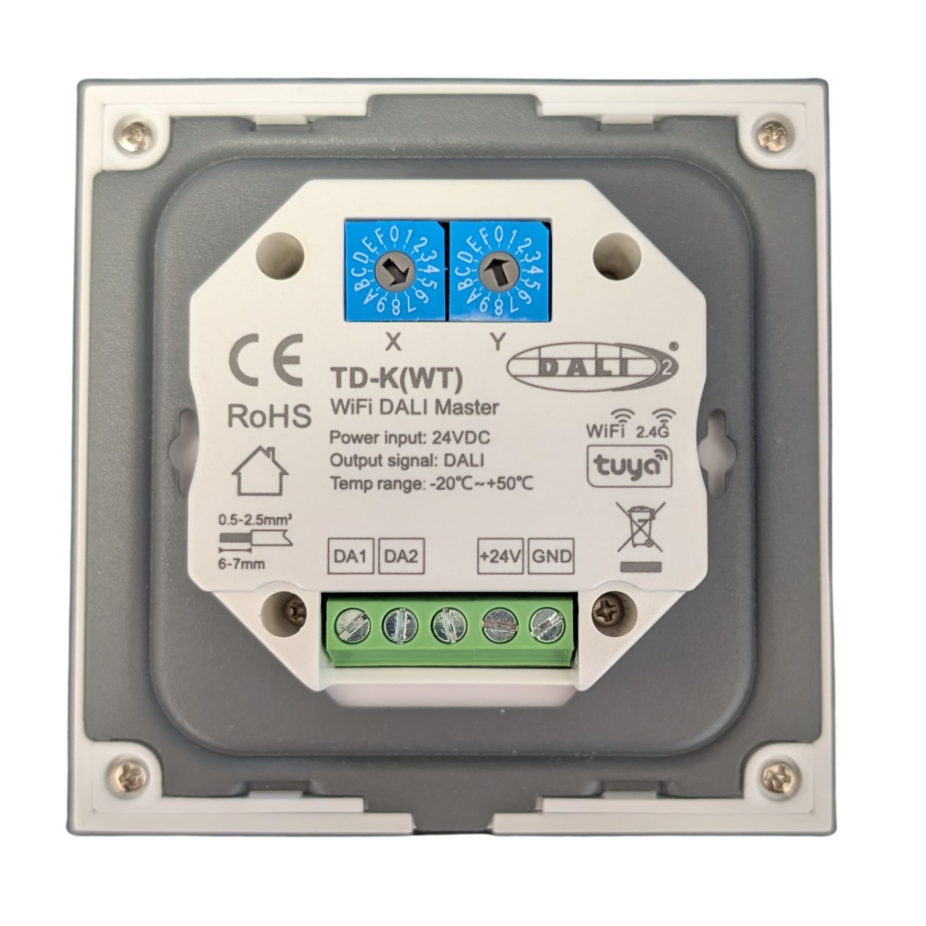 - Alimentazione bus DALI 16VDC o ingresso 24VDC, installazione 86x86mm