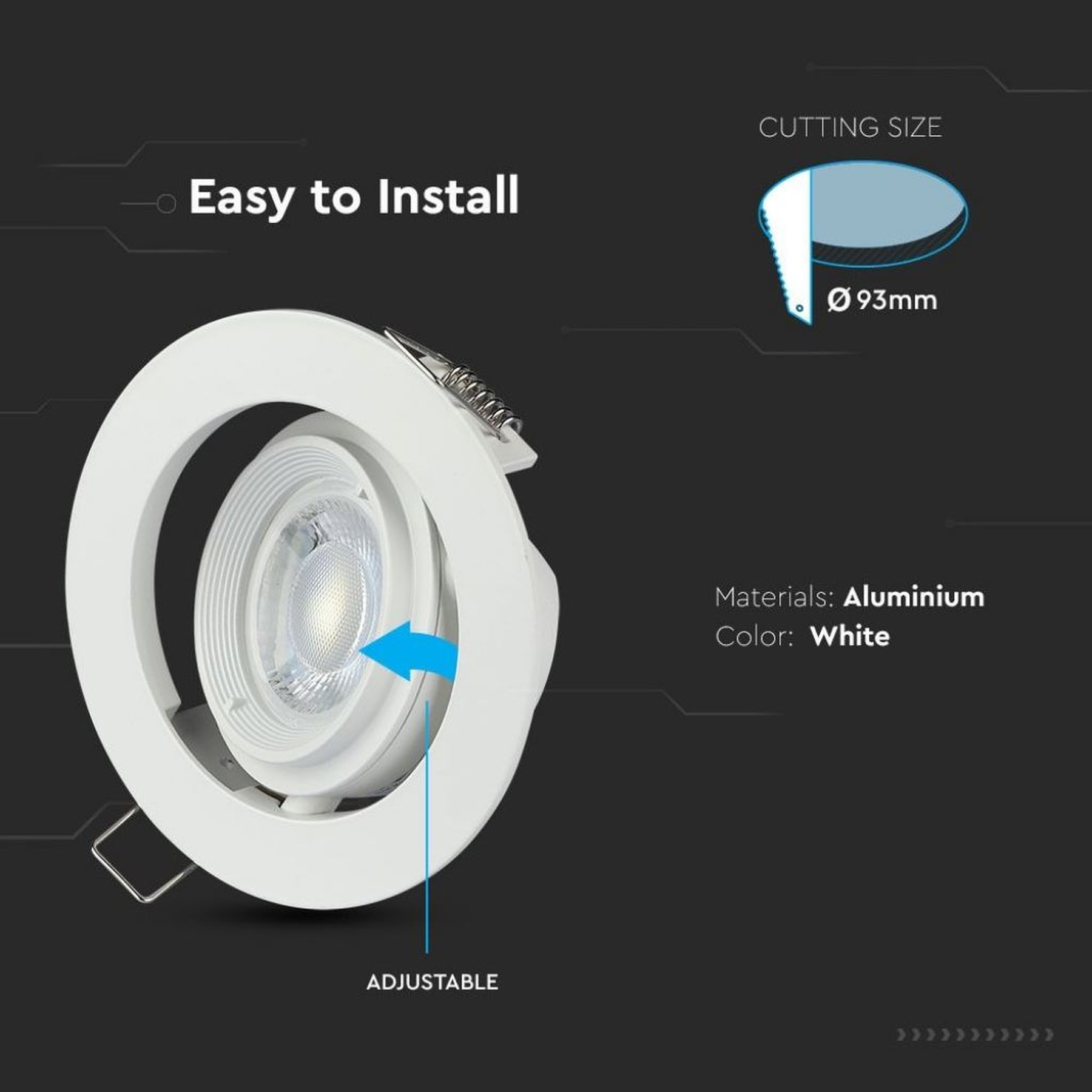 Porta Faretto Led GU10 MR16 Da Incasso Colore Bianco Orientabile 90 Gradi Rotondo Con Ghiera SKU-3689