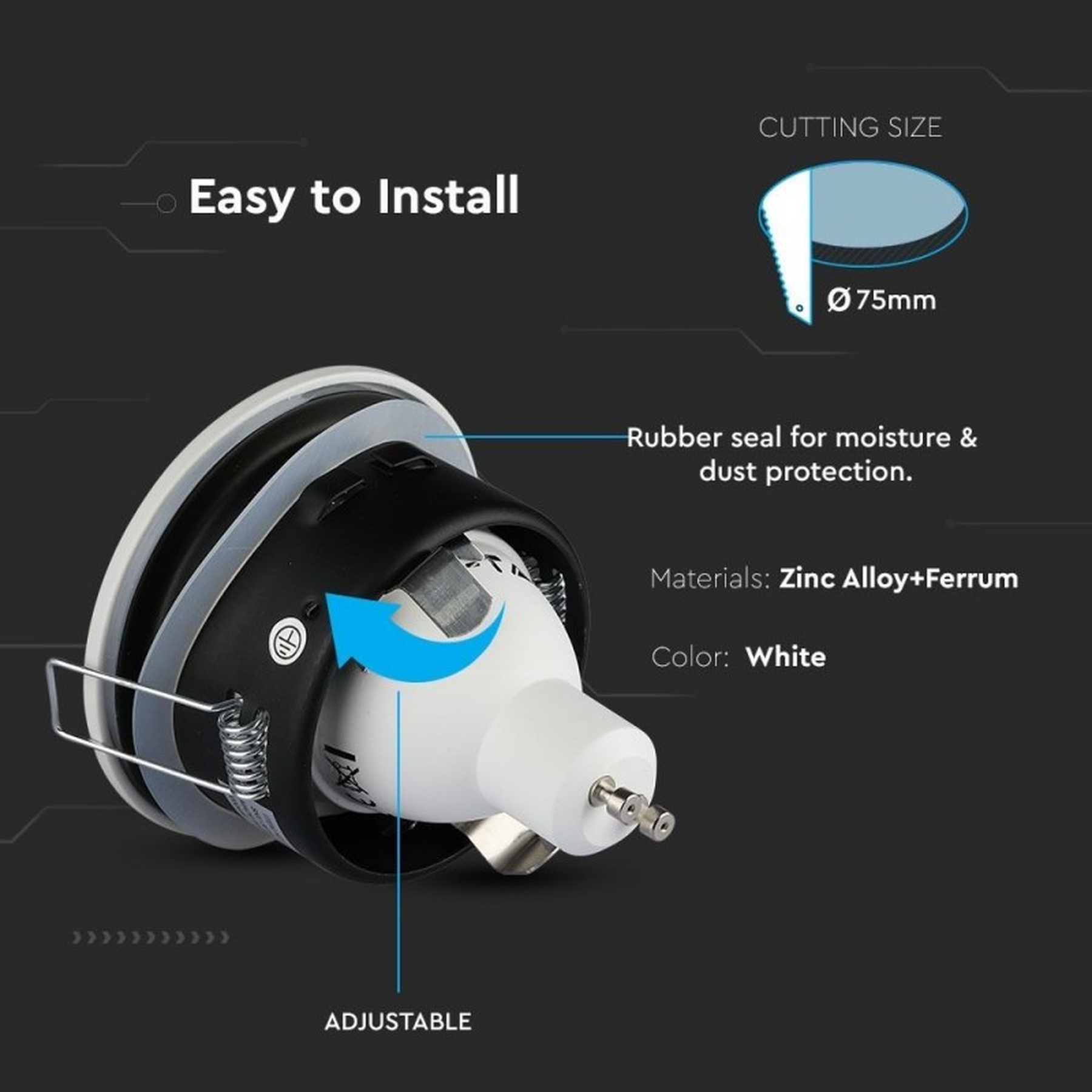 Porta Faretto Led GU10 MR16 Incasso Rotondo Colore Bianco Impermeabile IP54 SKU-3613
