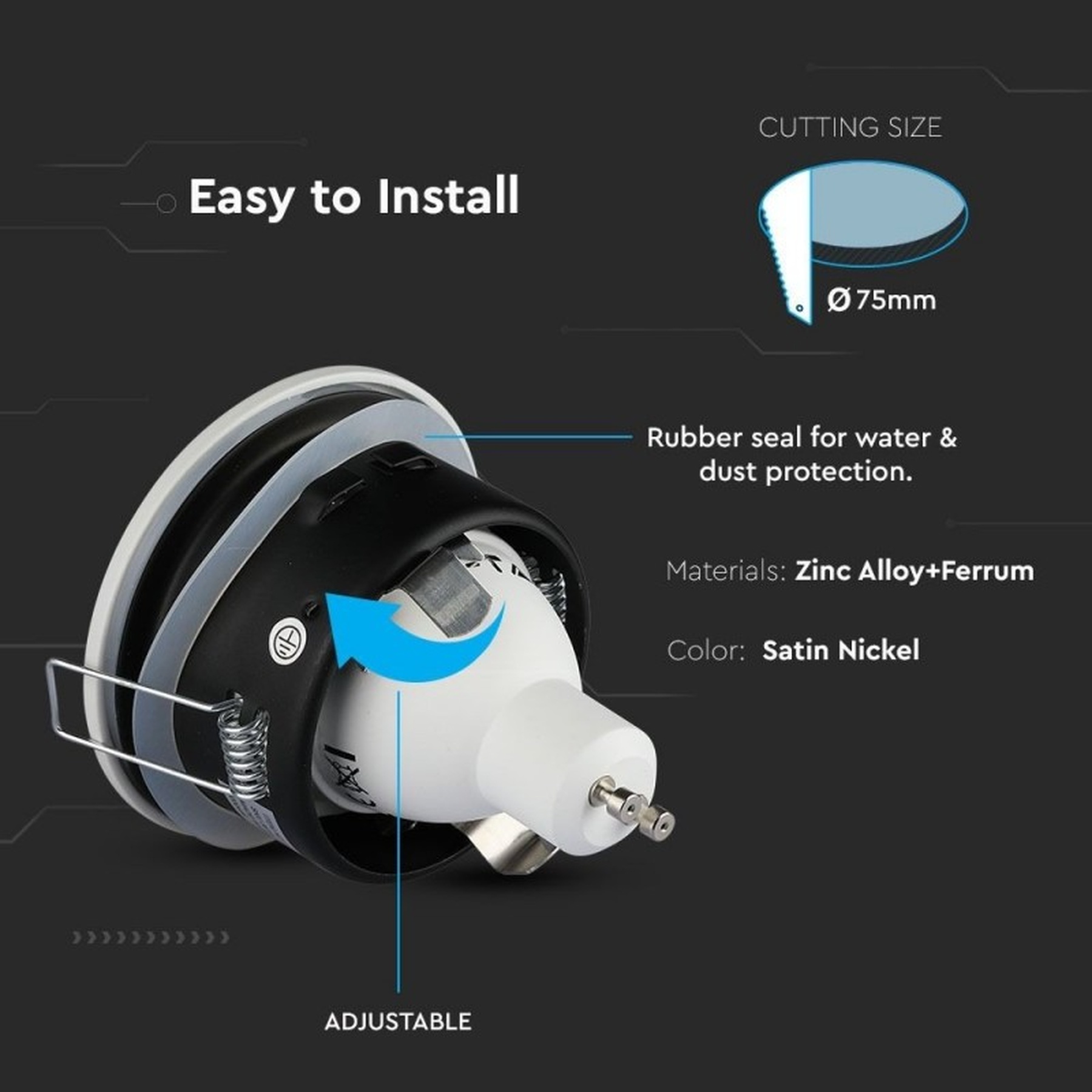 Porta Faretto Led GU10 MR16 Incasso Rotondo Colore Nichel Satinato Impermeabile IP54 SKU-3614