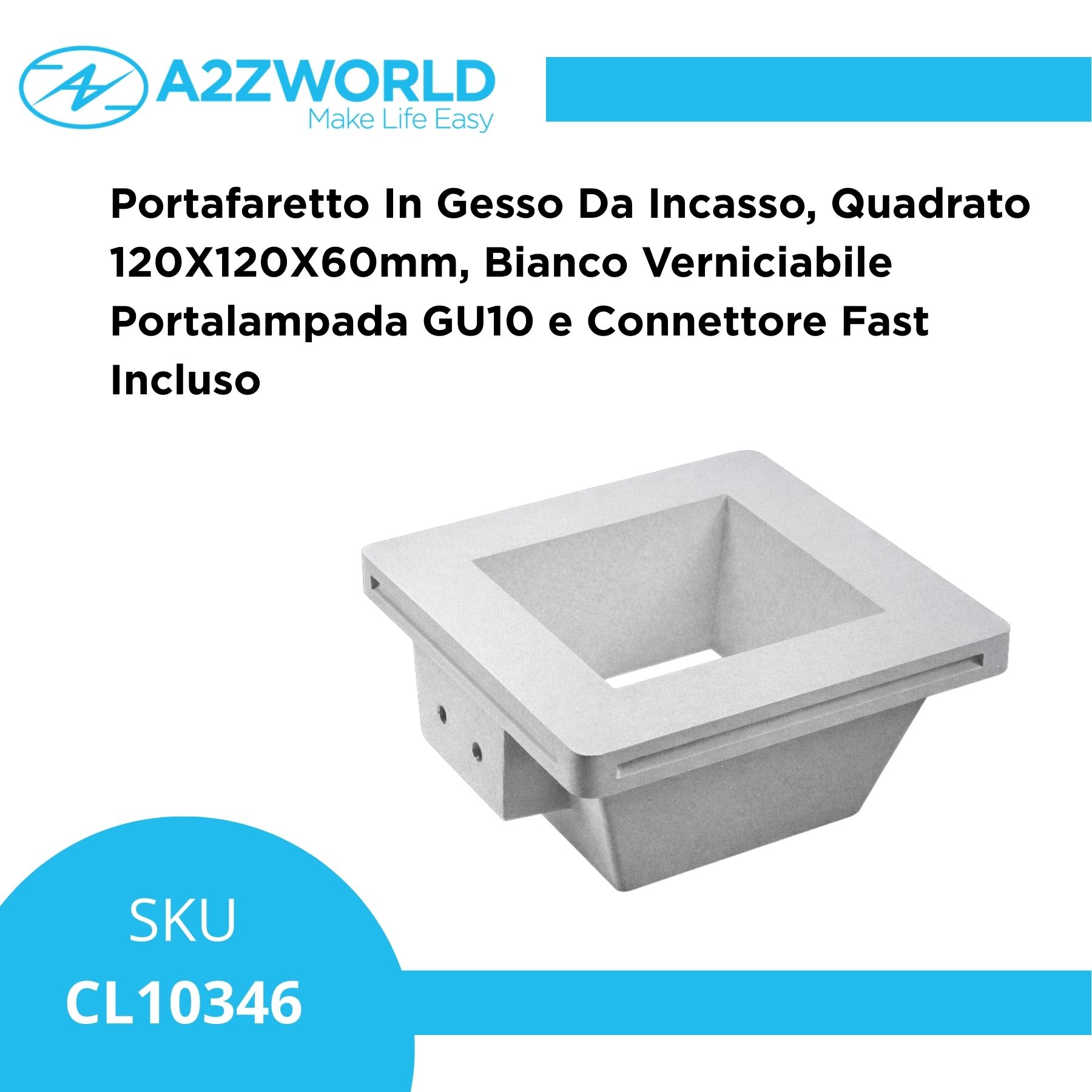 Portafaretto In Gesso Da Incasso, Quadrato 120X120X60mm, Bianco Verniciabile Portalampada GU10 e Connettore Fast Incluso