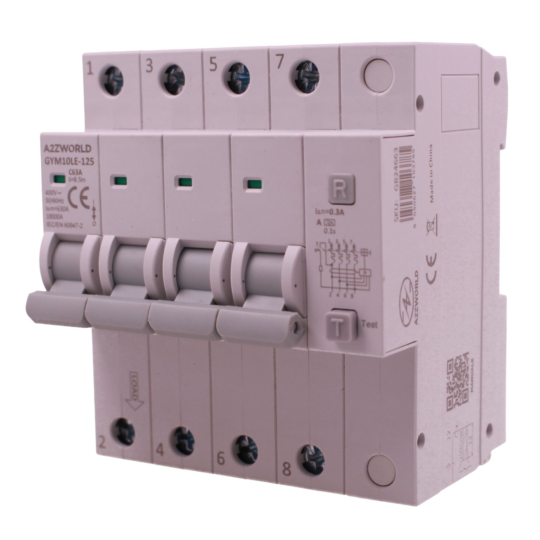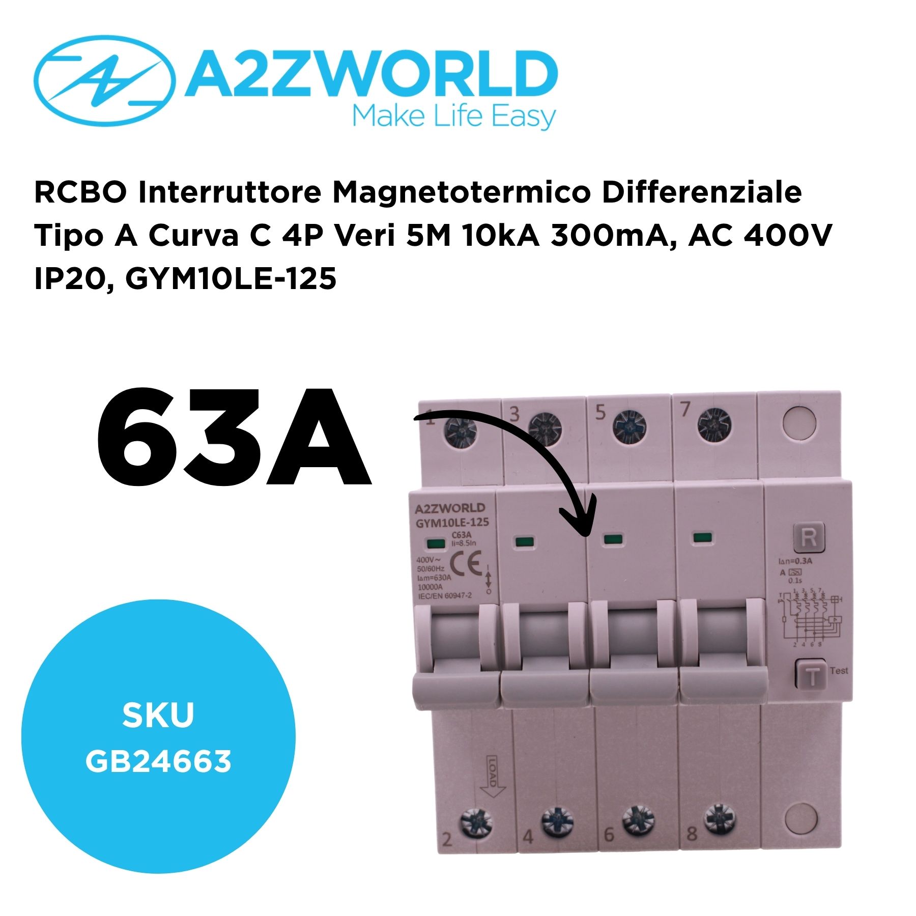 RCBO Interruttore Magnetotermico Differenziale Tipo A Curva C 4P Veri 5M 10kA 300mA, AC 400V IP20 GYM10LE-125, Disponibili 63A 80A 100A (C63A)