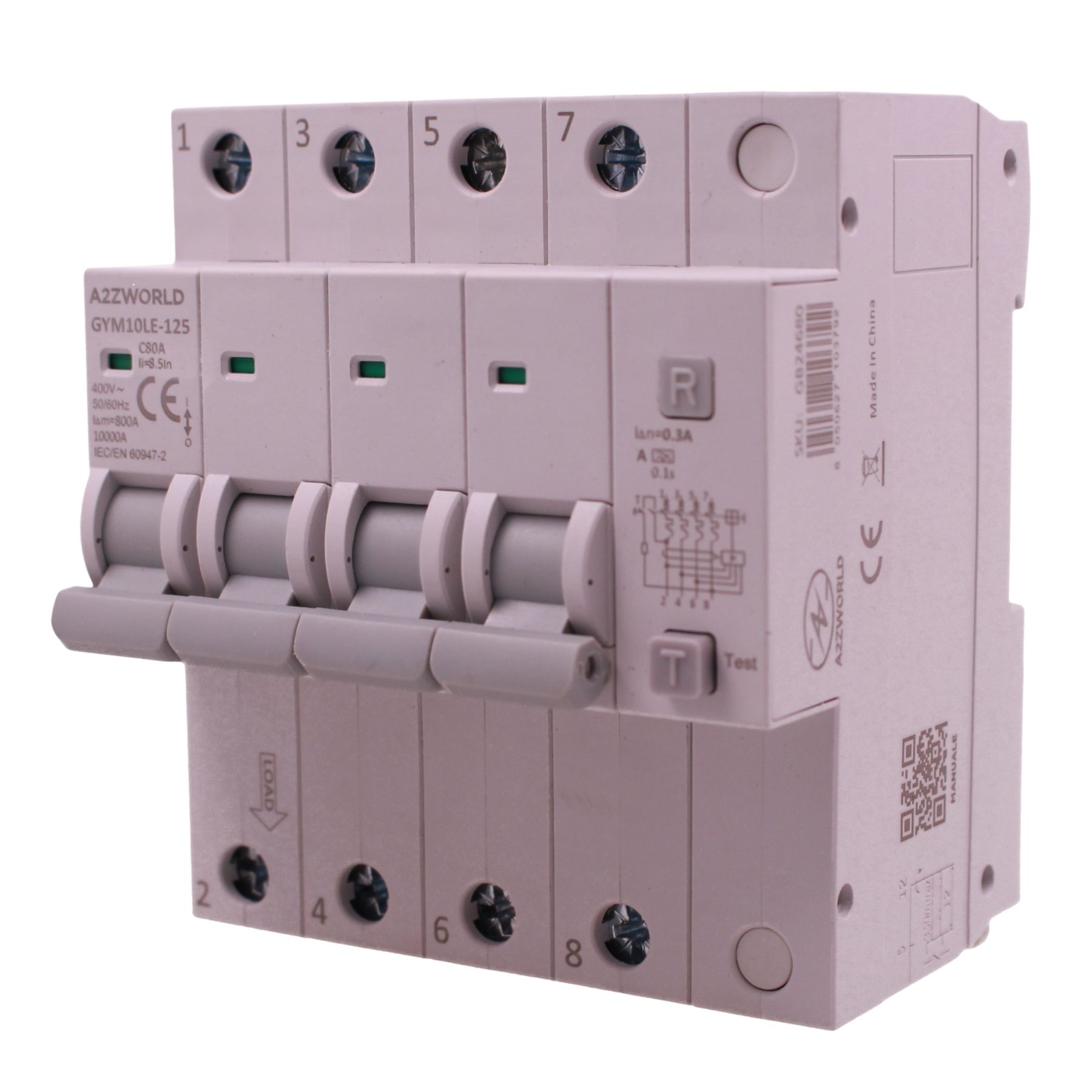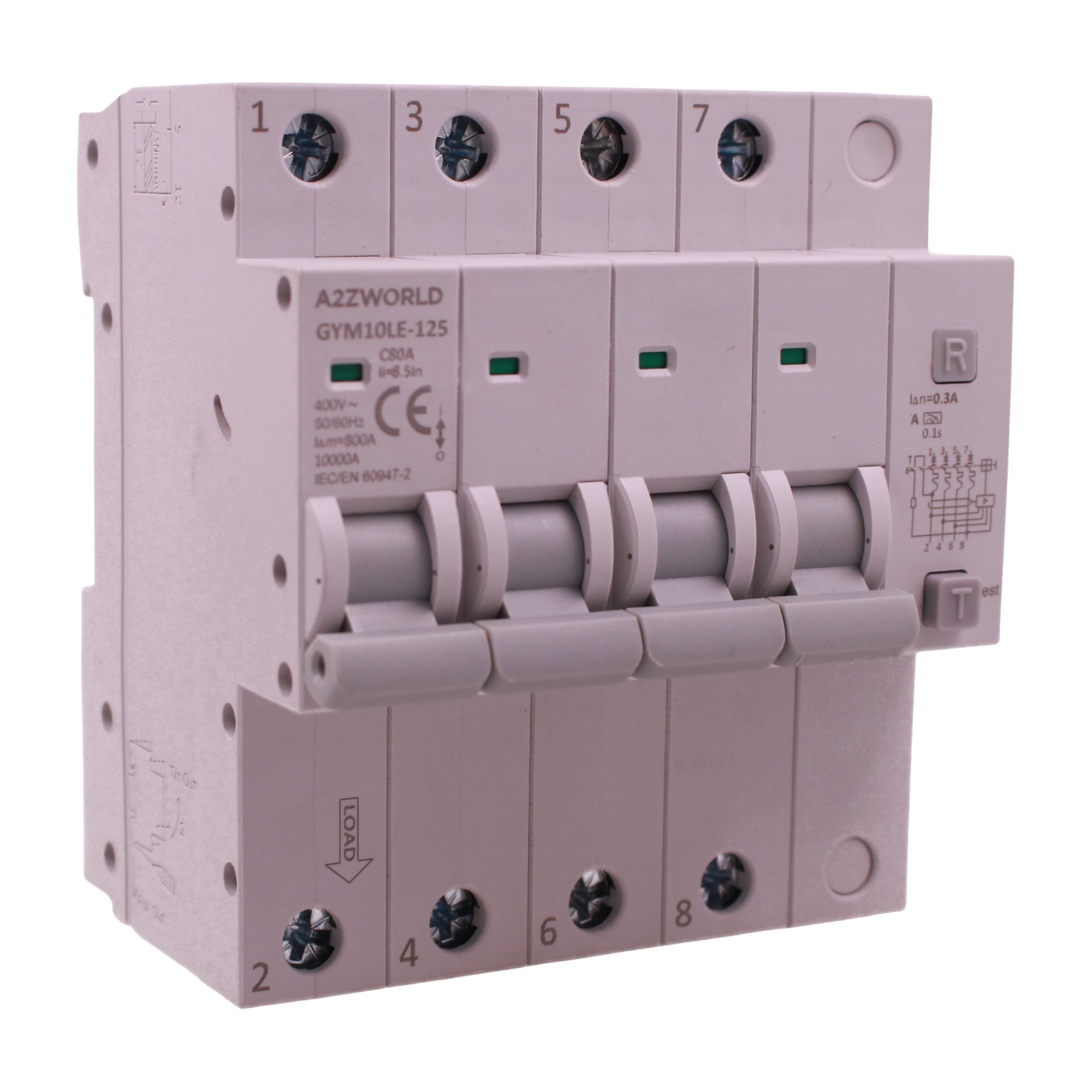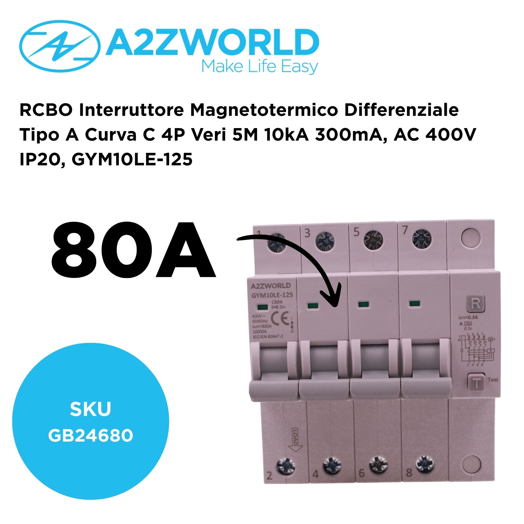 RCBO Interruttore Magnetotermico Differenziale Tipo A Curva C 4P Veri 5M 10kA 300mA, AC 400V IP20 GYM10LE-125, Disponibili 63A 80A 100A (C80A)