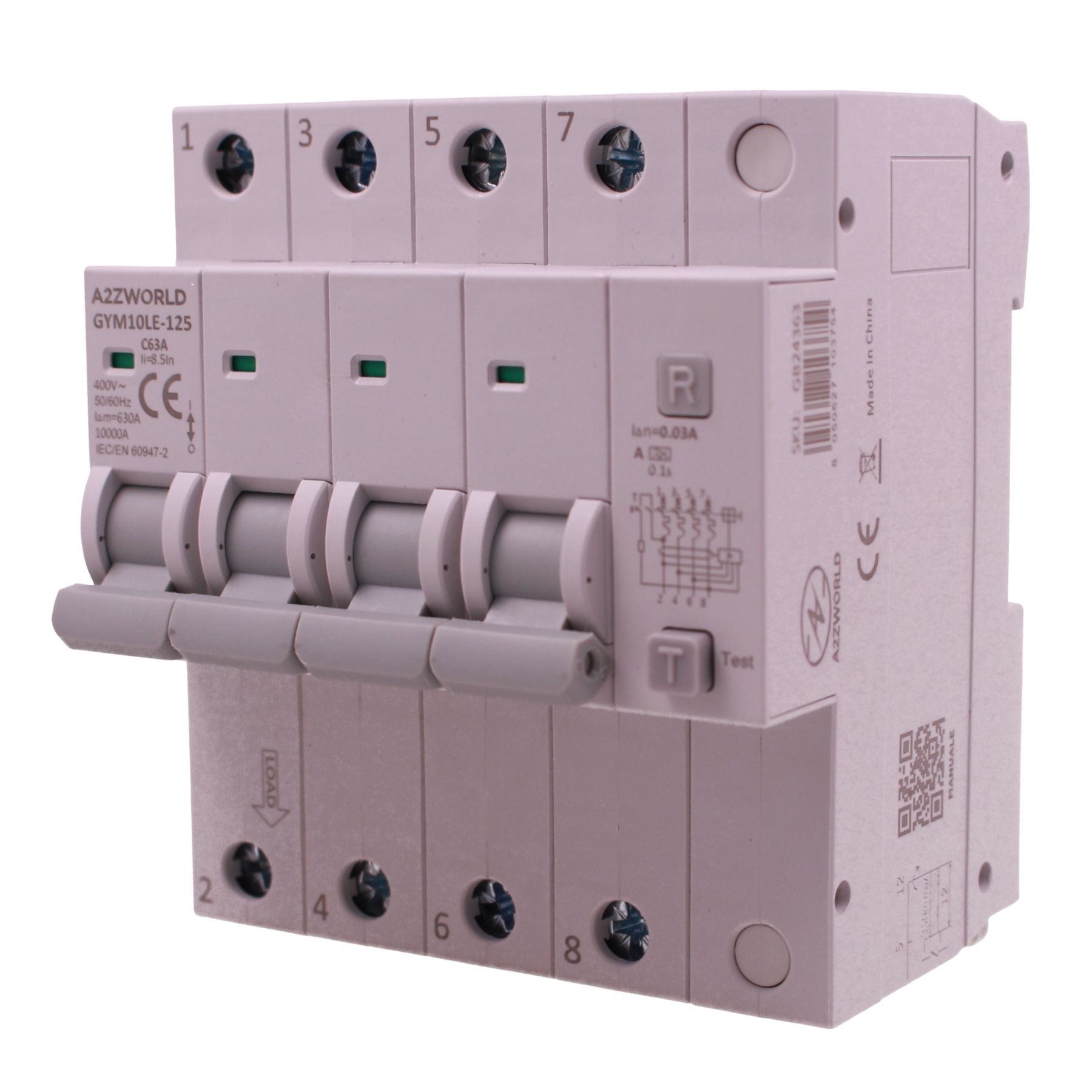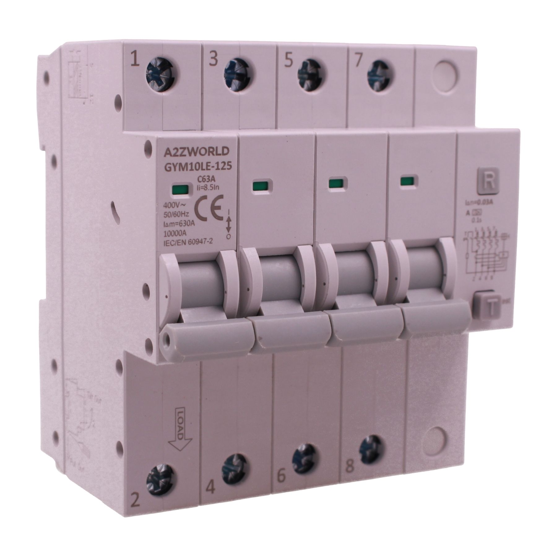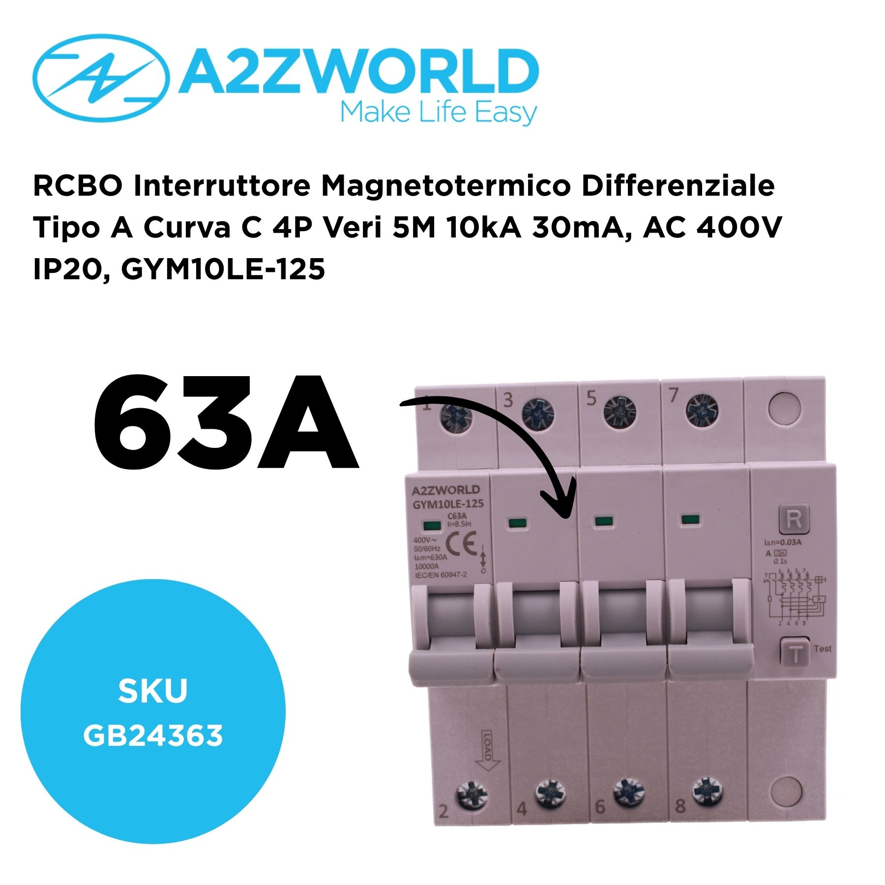 RCBO Interruttore Magnetotermico Differenziale Tipo A Curva C 4P Veri 5M 10kA 30mA, AC 400V IP20, GYM10LE-125, Disponibili 63A 80A 100A (C63A)
