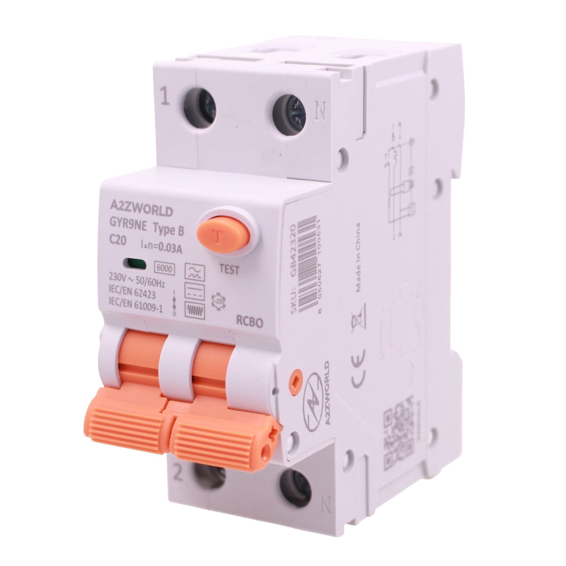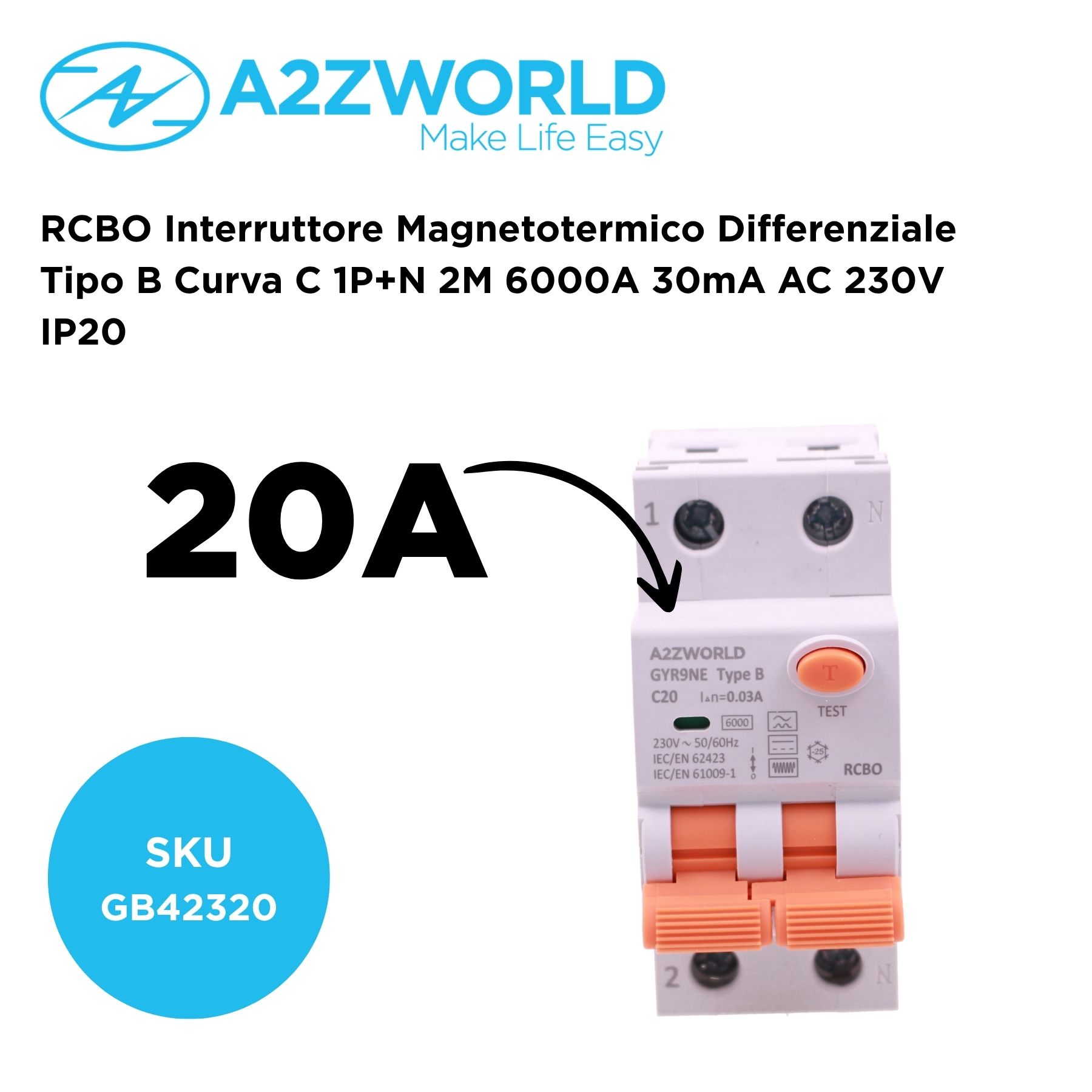 RCBO Interruttore Magnetotermico Differenziale Tipo B Curva C 1P+N 2M 6000A 30mA AC 230V IP20 Disponibili 16A 20A 25A 32A 40A (C20A)