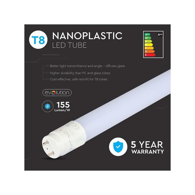- Tubo LED T8 con chip SMD V-TAC ad alta efficienza 160 lm/W