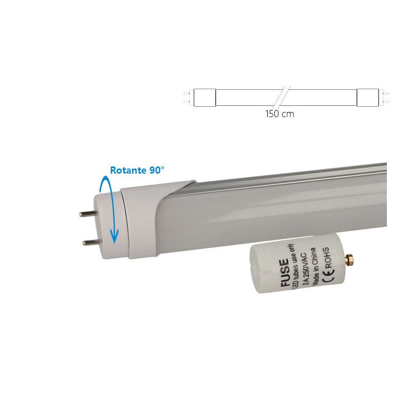 Tubo LED T8 G13 150cm 20W 2100lm Nanoplastica non Ruotabile, Disponibili 3000K 4000K 6400K (Bianco Freddo 6500K)