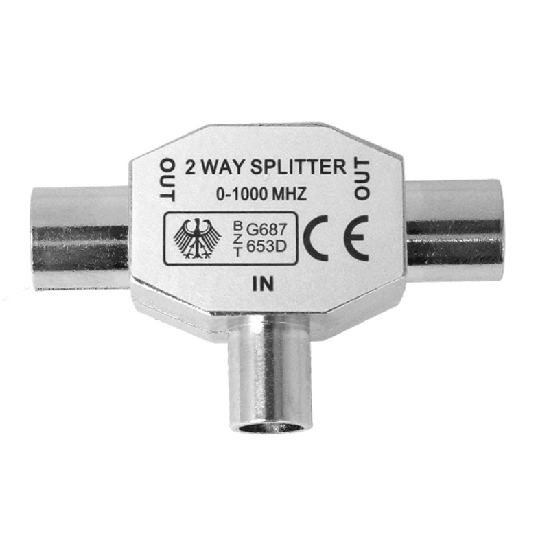 Sdoppiatore Splitter per Antenna TV in Metallo 1 Femmina 2 Maschi Distributore Derivatore Accoppiamento Antenna TV