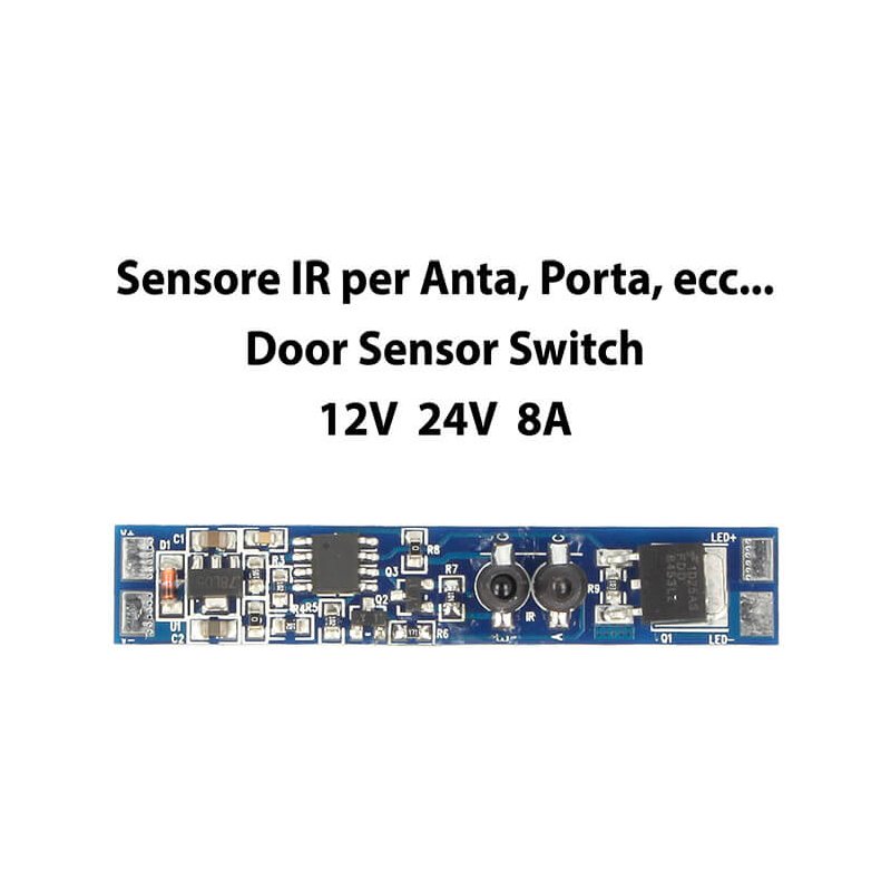 - Interruttore LED con sensore a infrarossi IR per l’accensione automatica della striscia LED all’apertura dell’anta o della porta
