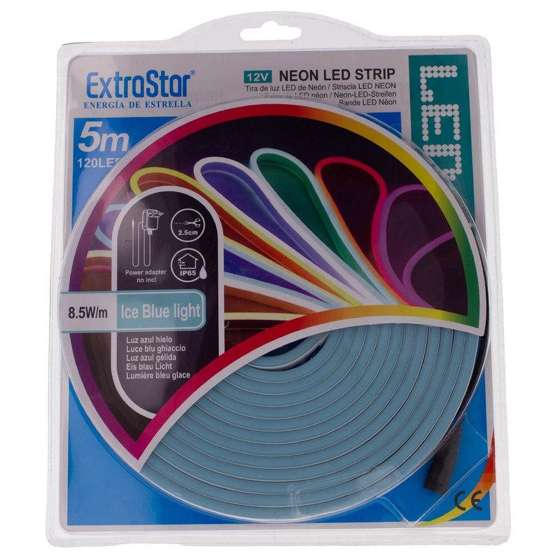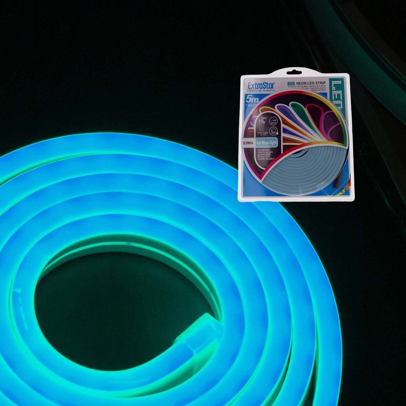 Striscia LED Neon 5M 8.5W/M 12V 120LED Modellabile e Tagliabile IP65 Impermeabile Ice Blue Angolazione Luce 120
