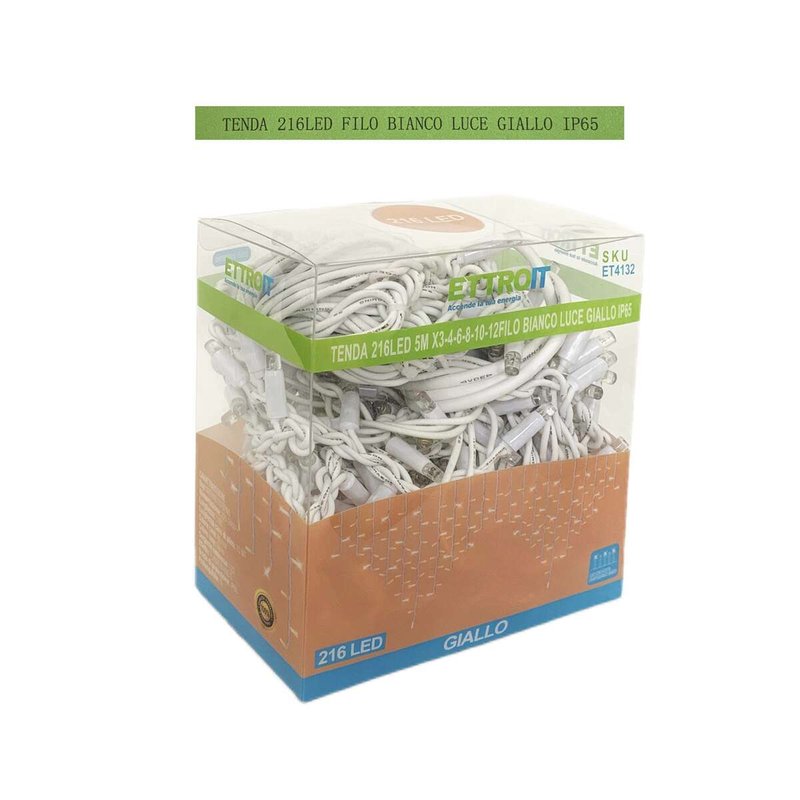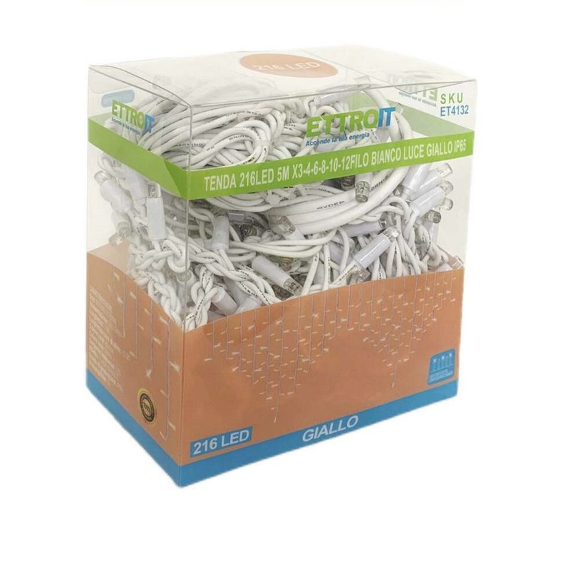 Tenda Luminosa Da Esterno IP65 5MT Con 216 Luci Led Bianco Caldo Giallo Effetto Cascata Con Connettore Prolungabile